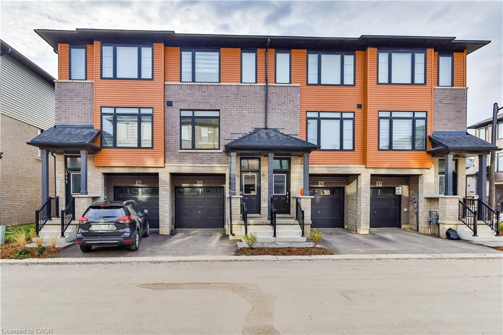 Spectacular 3+Den Freehold Townhouse in the heart of West Brant! Offering 1,507 sq. ft. with 2.5 baths, this home features a bright open layout with 9-ft ceilings, laminate floors, upgraded kitchen with quartz counters & stainless steel appliances, main-level laundry, and a versatile ground-level den with garage entry. The garage boasts a brand-new epoxy floor & EV charger. Enjoy a private patio, spacious primary with walk-in & ensuite, plus energy-efficient upgrades including heat pump, tankless water heater & high-efficiency furnace. Ideally located close to schools, parks, trails, shopping, and all amenities in this fast-growing community.