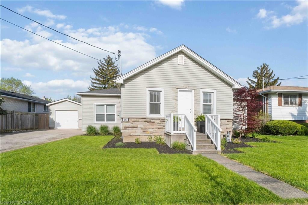 Beautifully updated raised bungalow in desirable North End St. Catharines with detached garage! This home is move-in-ready and sits on a rare double lot perfect for future income generating projects such as ADUs. This home features 2 bedrooms (easily converted back to 3), and has been stylishly updated throughout with a fantastic open-concept layout. Step into a bright and modern main floor with a renovated kitchen featuring quartz countertops, a stylish backsplash, breakfast bar, and ample cupboard space. Open dining and living area with sleek pot lights and updated trim and doors. Vinyl windows, updated bathrooms, radiant heating, and an owned hot water tank. The spacious primary bedroom boasts a private 2-piece ensuite for added convenience. The unfinished basement is insulated and ready for your finishing touches with plenty of room to use. Enjoy the outdoors in the large backyard, complete with a newer detached garage, shed, and newly installed patio area perfect for those looking to relax or entertain. Conveniently located by amenities such as schools, walking trails, shopping plazas and wine country in NOTL. Appliances included: fridge, stove, dishwasher, water heater, washer & dryer. Quick closing available; this home is ready when you are!