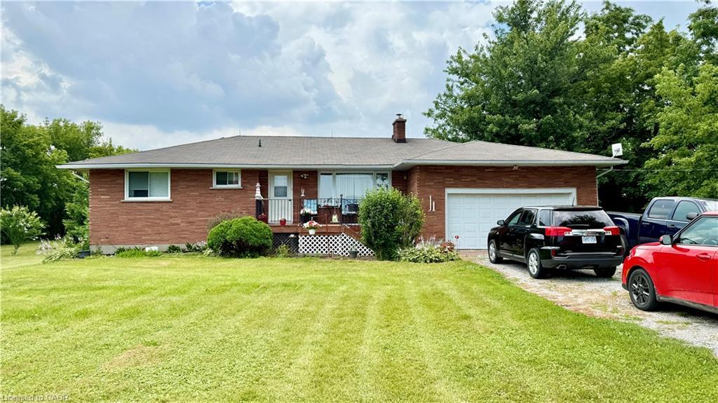 If you desire country living on an acre+ of property, 1665 Cockshutt Road is the place for you! Move in before Christmas! This home sits on a lot measuring 180 feet by 300 feet - approximately 1.24 acres. It's a larger bungalow of its era (circa 1958) that is approximately 1400+ sq ft. Main floor features include 3 generous sized bedrooms, a 4-piece bathroom, a large living room with big windows, a dining room area with patio doors to the back deck, sliding pocket doors that lead into the kitchen and a laundry/mudroom off the north end of the home. Take a walk down to the basement and you will find a large recreation room with a wood burning fireplace, an addition room that could be a bedroom or office space, a huge utility room and an additional storage room. There's lots of potential for modernizing the basement space. The backyard feels very country, backing onto beautiful orchards. There is a lot of space to run around and play, toss a baseball or throw the football. Imagine planting a beautiful garden to feed your family. Imagine adding a beautiful tiered deck space with a covering. There are tons of possibilities for this property. It could be your next family home! Located approximately 16 minutes to the Port Dover beach, 30 minutes to Brantford, or 45 minutes to the Ancaster Highway 403. Don't forget it has a 2-car garage and lots of space for your vehicles and recreational toys. Call right now and book your viewing. Make your offer today!