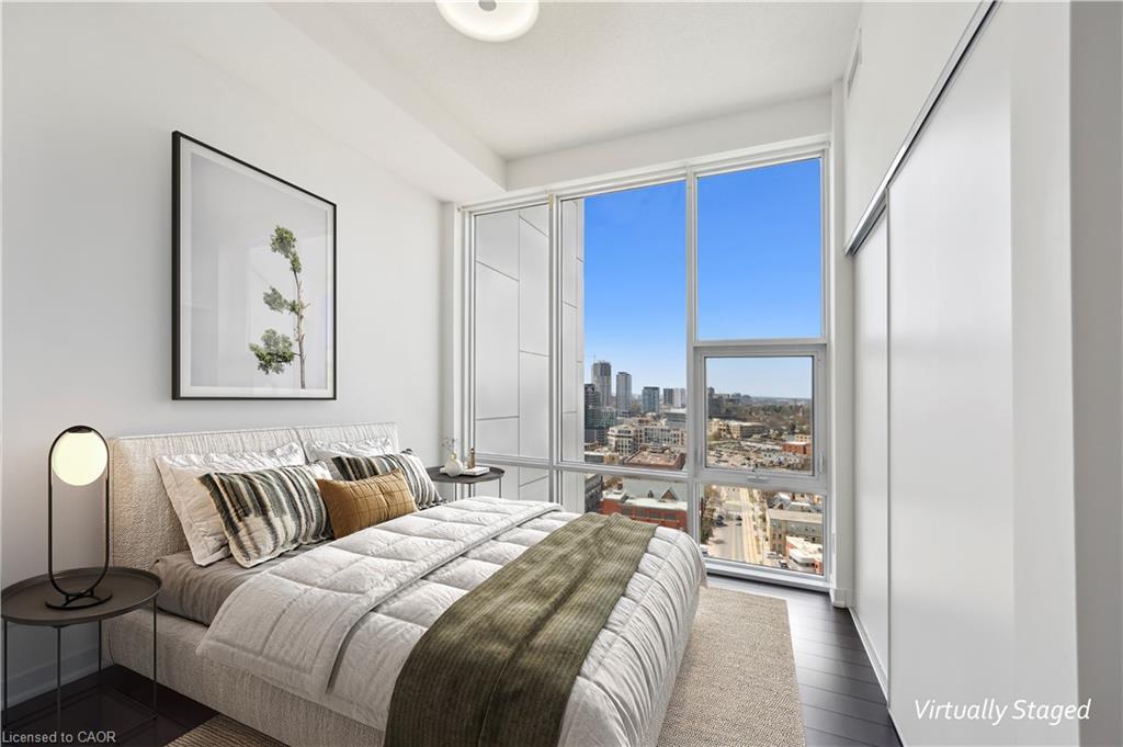 Experience unparalleled living in this unique corner PENTHOUSE—a rare gem with no upstairs neighbours! Bathed in NATURAL LIGHT, this bright 2-bedroom condo features 10-foot CEILINGS and floor-to-ceiling WINDOWS that frame breathtaking city VIEWS from your private 110 sq. ft. BALCONY. The sleek, MODER KITCHEN is a chef's delight, boasting full-height cabinetry, GRANITE COUNTERTOPS, upgraded stainless steel APPLIANCES, and a versatile MOVABLE ISLAND. Both bedrooms are generously sized, with the primary offering a private en-suite. Enjoy CARPET-FREE living, in-suite LAUNDRY, and ample STORAGE. This is the only PENTHOUSE of its kind available, perfectly positioned next to CITY HALL with the ION LRT at your doorstep. Step out to vibrant King Street’s SHOPS and RESTAURANTS, then retreat to your quiet oasis above it all. Residents enjoy a 7-day CONCIERGE, lounge, panoramic rooftop TERRACE, and a modern GYM. Underground PREMIUM PARKING and a storage LOCKER complete this exceptional offering.