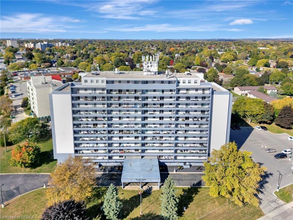 Welcome to the Village Towers, nestled in the vibrant heart of Brantford's sought-after Fairview area. This well-maintained, move-in ready 2-bedroom, 1-bathroom apartment boasts a spacious, carpet-free open-concept living and dining area, seamlessly flowing into your private balcony, where breathtaking views of the beautifully landscaped grounds await. Step into the bright and modern kitchen, featuring generous cabinetry and a sleek tile backsplash that adds a touch of elegance. The primary bedroom offers a walk-in closet and a soothing, neutral décor, creating a serene retreat at the end of the day. This exceptional unit also provides the convenience of a storage locker, an underground parking spot, and the ease of having all utilities bundled into a single monthly payment, simplifying your budgeting process. Residents of Village Towers can indulge in a wealth of amenities, including a fully equipped exercise room, a rejuvenating sauna, and a cozy lounge area perfect for relaxation. Additionally, a full-service laundry facility is on site, and a large party room is available to reserve for those special private gatherings with friends and family. Surrounded by essential amenities—shopping, delightful restaurants, public transit, schools, parks, and easy highway access—everything you need is just a short stroll away. Don't miss this incredible opportunity to embrace a lifestyle defined by convenience, luxury, and functionality. Schedule your showing today!