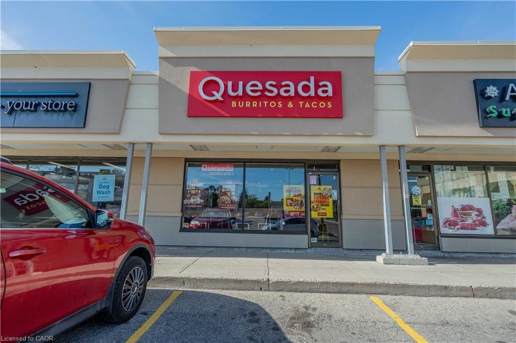 Quesada Business in Kitchener, ON is For Sale. Located at the busy intersection of Highland Rd W/Lawrence Ave. Surrounded by Fully Residential Neighbourhood, Close to Schools, Highway, Offices, Banks, Major Big Box Store and Much More. Business with so much opportunity to grow the business even more. Rent: $4700/m including TMI & HST, Lease Term: Existing till 2029 + 10 years Option to renew, Royalty: 6%, Advertising: 3%.