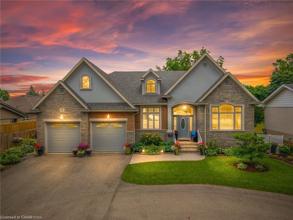 Welcome to 48 Casablanca Boulevard, a luxury custom-built bungalow set on a grand, pool-sized lot in the desirable town of Grimsby. Meticulously maintained and beautifully landscaped, this home offers a rare blend of comfort, scale, and quiet sophistication. The open concept main level features Canadian hardwood, porcelain tile, and a well-appointed kitchen with leather granite counter tops, marble back splash that flows into the dining area with backyard views, 9 ft + ceilings with a vaulted ceiling in the great room —ideal for entertaining or creating a dream outdoor retreat. The finished open concept lower level features a high-quality in-law suite with 8 foot ceilings and a private entrance. Complete with a sleek kitchen, open living and dining areas, a built-in Murphy bed, and space that could easily convert into a second bedroom, the layout is stylish, spacious, and offers exceptional flexibility for extended family, guests, or entertaining. Enjoy nearby access to the beach, local restaurants, and boutiques, with schools, amenities, the QEW, and future Grimsby GO Station all close at hand. A refined home in one of Niagara’s most connected communities.