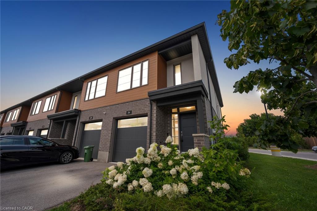 Welcome To 26 Steele Crescent, A Stunning Condo Townhome Where Contemporary Style Meets Everyday Comfort In One Of Guelphs Most Desirable Neighbourhoods. Offering 1,342 Sq. Ft. Of Bright, Open Living Space, This 3-Bedroom, 2.5-Bathroom Home Is Designed For Modern Living And Effortless Entertaining. The Main Level Showcases Premium Vinyl Flooring And A Thoughtfully Planned Open-Concept Layout. At Its Heart, The Gourmet Kitchen Features Quartz Countertops, Built-In Appliances, Sleek Cabinetry, And A Large Peninsula With SeatingPerfect For Morning Coffee Or Casual Conversations. Flowing Seamlessly Into The Combined Living And Dining Area, This Space Opens To The Backyard With A Walkout That Extends Your Living Outdoors For Summer Gatherings, While A Stylish 2-Piece Powder Room Completes The Level. Upstairs, The Primary Suite Offers A Private Retreat With A Spacious Walk-In Closet And A Beautiful 3-Piece Ensuite, While Two Additional Bedrooms, A Modern 4-Piece Bath, And Convenient Upper-Level Laundry Add To The Homes Practicality. Ideally Located Near Schools, Parks, Shopping, And All Of Guelphs Fantastic Amenities, With Quick Access To Major Highways For An Easy Commute, This Property Combines Contemporary Design With Everyday Convenience. To Top It Off, The Monthly Maintenance Fees Cover All Ground Maintenance, Including Grass Cutting, Seasonal Clean-Up, And Snow Removal Ensuring A Truly Low-Maintenance Lifestyle In A Vibrant Community.