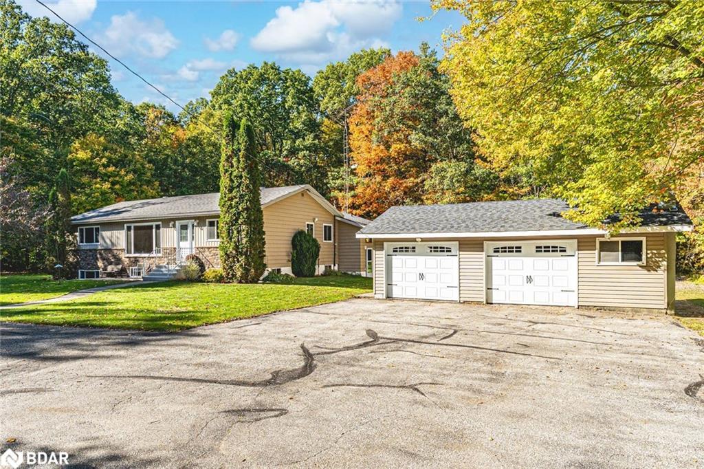 34-ACRE COUNTRY RETREAT WITH AN INGROUND POOL, IN-LAW POTENTIAL & LIMITLESS POSSIBILITIES! Set on an incredible 34-acre property surrounded by towering trees and peaceful natural beauty, this sprawling bungalow offers true country living with endless room to roam, complete with manicured trails perfect for walking, biking, or snowmobiling. Embrace a lifestyle defined by nature and tranquillity, just minutes from Georgian Bay’s beautiful beaches, local parks, and a grocery store, with Wasaga Beach only 15 minutes down the road. The property makes an unforgettable first impression with a circular driveway offering parking for more than 20 vehicles, a detached double garage, multiple sheds, and plenty of space for a future shop. The expansive backyard features an inground pool surrounded by a generous patio, perfect for outdoor entertaining or quiet relaxation. Over 3,200 finished square feet, including more than 1,850 on the main level, provide an abundance of living space for families, multi-generational living, or those dreaming of a country retreat. The large kitchen features white cabinetry, built-in appliances, a centre island, and an open connection to the formal dining room, making it ideal for hosting gatherings. The bright living room overlooks the treed front yard, while the family room features a cozy wood fireplace and a walkout to the backyard. A separate sun-filled hot tub room with a fireplace offers an additional sliding door walkout leading to the pool and patio area. The finished basement extends the possibilities with in-law potential, complete with a second kitchen, living room, den, rec room, two bedrooms, and a full bathroom. Whether you envision a peaceful family haven, a multi-generational escape, or simply a property with room to grow, this exceptional #HomeToStay is filled with opportunity and ready for your personal touch to make it truly yours!