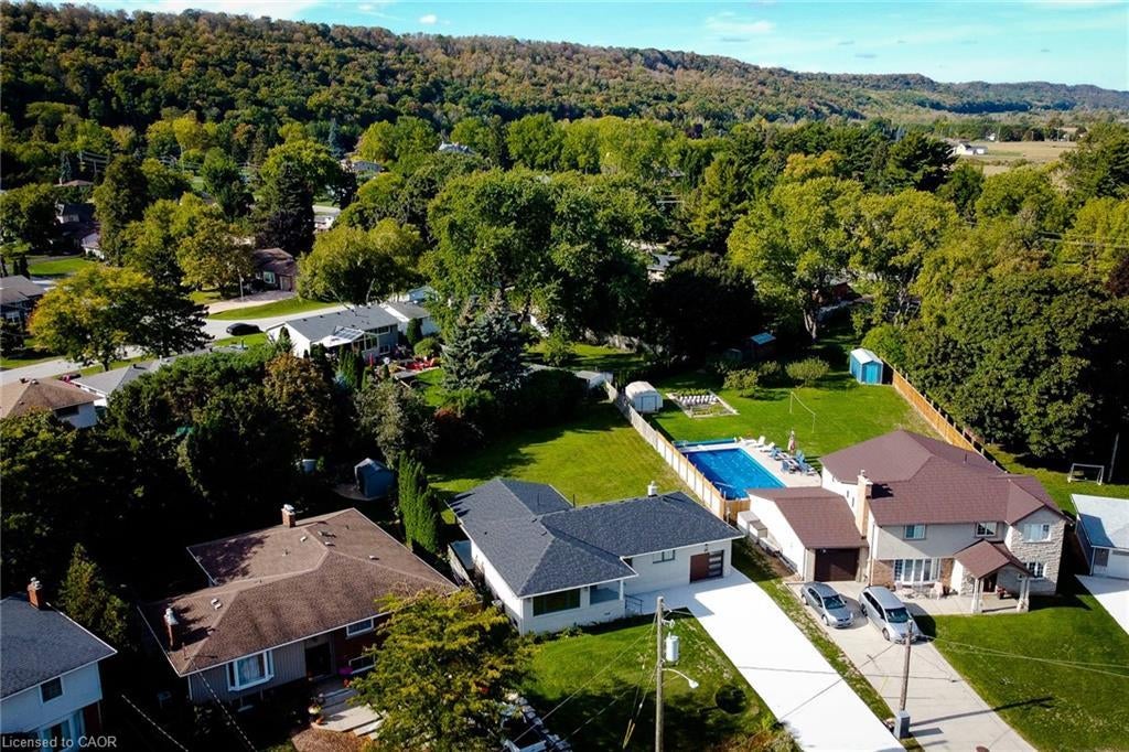 This immaculate 3-bedroom, 2-bath bungalow has been completely renovated, offering 1,255 sq. ft. of modern, carpet-free living. The open-concept main floor features bright, spacious living and dining areas with gleaming hardwood floors and oversized windows that fill the space with natural light. The stylish eat-in kitchen is perfect for any home chef, featuring stainless steel appliances, a tiled backsplash, generous cabinetry, and an island with a breakfast bar for casual dining. The contemporary 3-piece main bathroom showcases elegant finishes, while the primary suite includes custom built-in wardrobes and a spa-inspired 3-piece ensuite with a walk-in shower. The full, unfinished basement provides endless potential whether for additional living space or an in-law suite with a separate entrance already in place. Step outside to enjoy the private, covered concrete patio and low-maintenance backyard, perfect for relaxing or entertaining. Situated in a quiet, family-friendly neighborhood, this home is within walking distance to schools, parks, and the GO Station, with quick access to the mountain and QEW. With 200 amp service and exceptional upgrades throughout, this home is truly move-in ready a must-see!