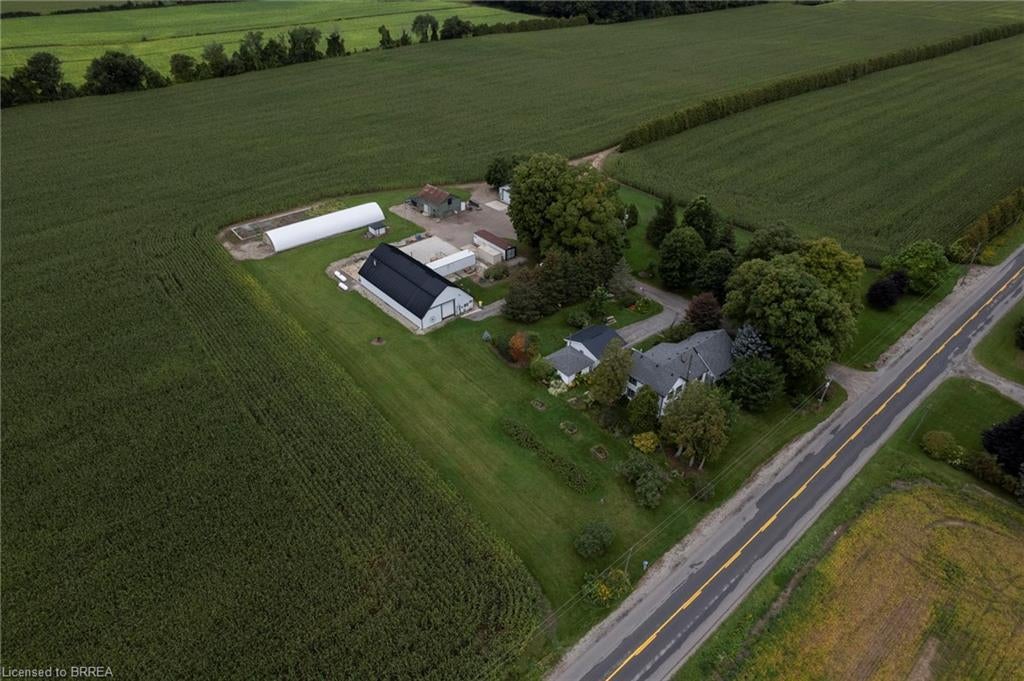 Super rare offering of a 3.83-acre country property with large family home with several outbuildings, just off Hwy 403. The four-bedroom, 2 full bath farmhouse has space for everyone and been partially renovated with newer central air, newer central vac, and finished basement with epoxy floor. Very mature yard with huge maples, great gardens with underground irrigation watering system, invisible dog fence around the front of the property, and even a golf practice area, 125 yards long. Outbuildings include a double insulated 24’x24’ garage with roll up doors and openers, a single car garage, the centrepiece 80’ x 40’pack barn that is insulated & galvanized sheeted inside, heated, with wash booth and office. 3 former bulk kilns made for storage with roll up doors, a 100' Poly greenhouse still usable in many ways. The original barn is still intact with old barn board & hand hewed Beams. Extra storage building with cement floors, roll up door, lighting. Full cement pad area behind work barn. Good, clean water supply with sand point well (new well pump, 2025) and the septic was just cleaned and inspected. Fibre internet being installed along the road currently. Imagine the possibilities. Book your private viewing today.
