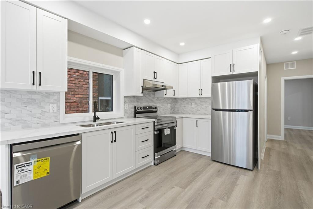 One-Bedroom Unit (Main Level) Modern luxury meets downtown convenience in this newly renovated 1-bedroom unit in Central Hamilton. Offering a sleek open-concept kitchen with stone counters, stainless steel appliances, and custom cabinetry. The unit features upgraded flooring, LED pot lights, and a beautifully finished bathroom. Brand-new HVAC, and dedicated parking adding to the comfort. Steps from Hamilton General Hospital, the GO Station, the Arts District, and the Bayfront waterfront—ideal for young professionals or couple.