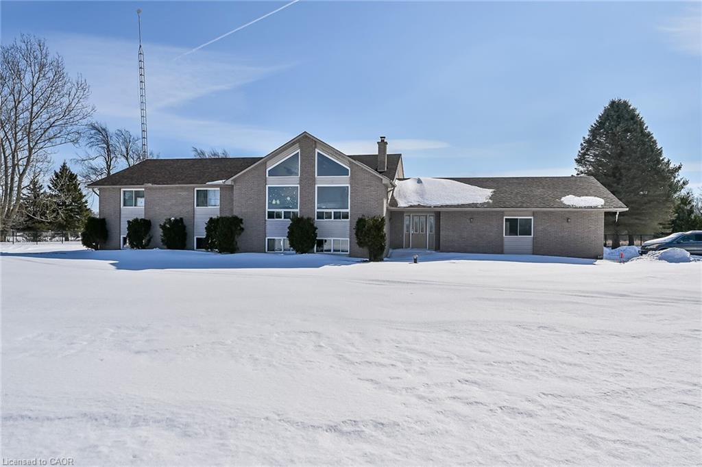 Desirable 6.19 acre rural property located 10 mins west of Simcoe’s amenities incs Hospital, schools, arena/rec centres, shopping, eateries & Lynn walking/biking trails - in-route to the popular destination villages & towns dotting Lake Erie’s Golden Southcoast. Positioned handsomely on this attractive parcel is 1990 built elevated ranch bungalow enjoying 900ft of frontage on McDowell Road & extends 300ft deep to abutting farm fields w/no immediate neighbors. Main driveway leads to gorgeous setting where sprawling estate-style home is situated to the east & detached 1,405sf triple car garage (built in 1990) is constructed on west side incs conc. flooring, 100 amp hydro & 2 roll-up doors. Spectacular 4,640sf multi-purpose 2 storey building is accessed from convenient 2nd driveway ftrs metal clad exterior/roof covering accented w/brick skirting, insulated lower level, fully open upper level, heavy duty hydro, water well & recently installed septic & tile field. Soaring pine tongue & groove cathedral ceilings, solid hardwood flooring, natural stone wood burning fireplace & patio door rear yard deck walk-out compliment majestic open concept Great room showcasing the 2,363sf of main level living area incs “Chef-Worthy” kitchen sporting ample oak cabinetry & island flowing to adjacent dining area. Floor plan continues w/inviting front foyer, spacious primary bedroom ftrs 2pc ensuite, 2 additional bedrooms & 4pc main bath. On-grade foyer incs functional laundry room incorporating 3pc bath, direct access to 753sf attached garage & staircase descending to 2,108sf finished lower level boasting massive 622sf family room segues to 470sf rec room, 2 huge bedrooms & sizeable storage/utility room housing the dwelling’s mechanicals. Possibility for ARU (Additional Residential Unit). Extras - n/g furnace, AC-2017, roof-2020, drilled well-2023, chain link fenced yard, concrete pad & parking compound, water softener/purification system & septic. Incredible Package - Incredible Value!