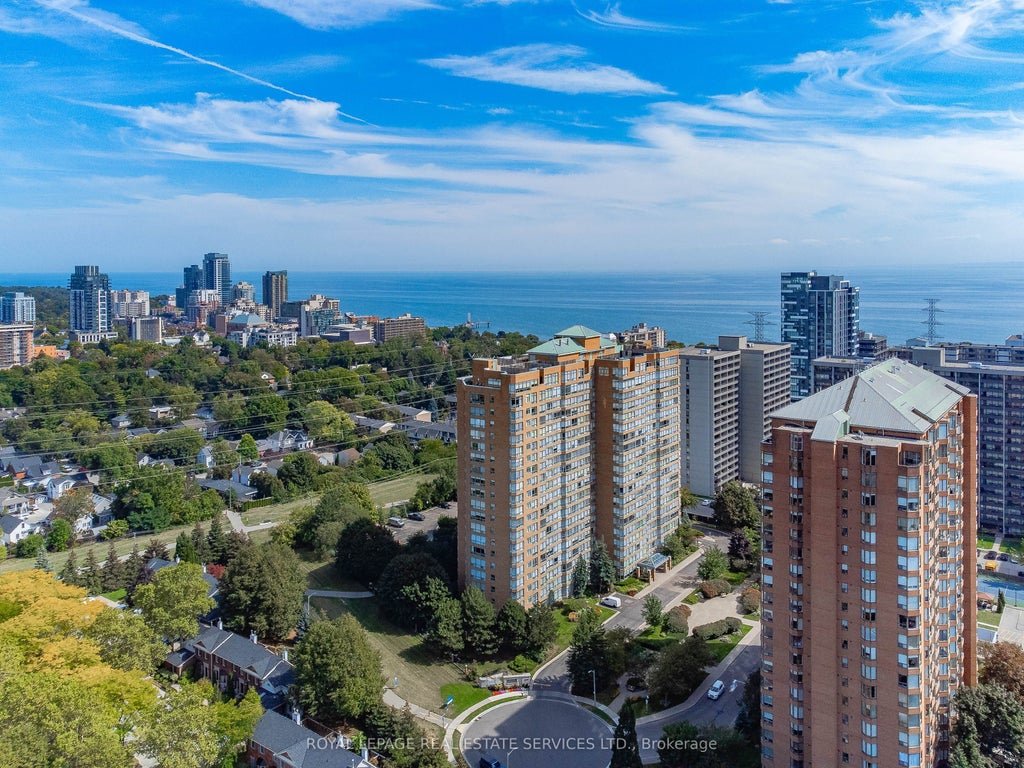 Welcome to effortless condo living at the highly sought-after Grande Regency just minutes from vibrant downtown Burlington, where convenience meets lifestyle. This beautifully updated two-bedroom suite features a thoughtfully designed layout with neutral décor and serene, unobstructed views of treetops, open skies, Lake Ontario, and the Niagara Escarpment. From the moment you step inside, the spacious design and warm, welcoming ambiance make you feel instantly at home. The generously sized living room is bathed in natural light through floor-to-ceiling windows, creating a bright and airy ambiance. The open-concept dining area is perfect for entertaining, while the modern kitchen features ample cabinetry, pull-out drawers, generous counter space, and stainless-steel appliances. A sunny solarium adds versatility, perfect as a reading nook, office, or hobby space. The spacious primary bedroom is a welcome retreat complete with a 4-piece ensuite and multiple closets. A second bedroom, stylish 3-piece bathroom, and in-suite laundry provide added comfort and functionality. Additional features include one underground parking space and a storage locker. Superb amenities include 24/7 concierge, party room with kitchen, exercise rooms, infrared saunas, table tennis, squash court, sun bed, hobby room, penthouse TV lounge, roof top lounge/library, roof top patio, guest suites, outdoor swimming pool, outdoor BBQ and lounge areas, bike storage, tennis court and visitor parking. Enjoy unbeatable access to downtown Burlington's best - Mapleview Mall, boutique shopping, trendy restaurants, Lake Ontario, Spencer Smith Waterfront Park, scenic trails, public transit, and major highways. Nearby amenities also include libraries, places of worship, playgrounds, and the GO station. This home offers an unrivaled combination of modern luxury and comfort, excellent views and prime location! VIEW THE 3D VIRTUAL IGUIDE TOUR, FLOOR PLAN, VIDEO & ADDITIONAL PHOTOS