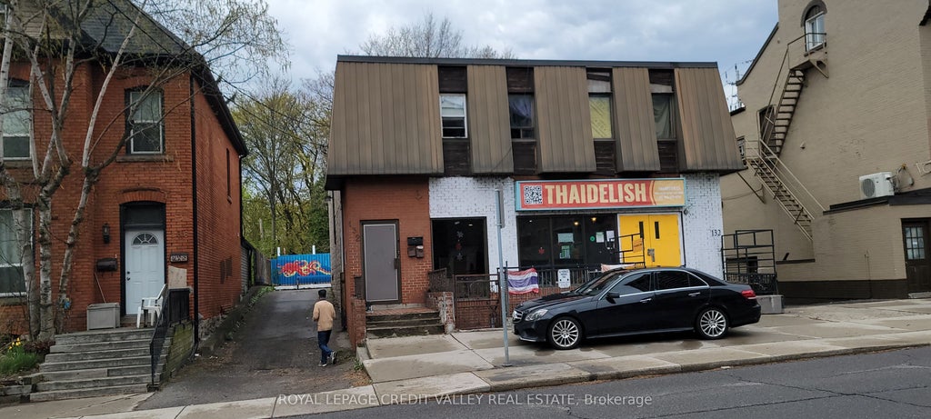 Freestanding building in the Main st and Queen St area. Two 2 BR and one 3BR apartment leased with the tenants paying their own utilities with separate meters. Main level commercial space of approx. 2000 sf suitable for a variety of use like, restaurant, clinic, retail or an office. Coin laundry in the building for common use.