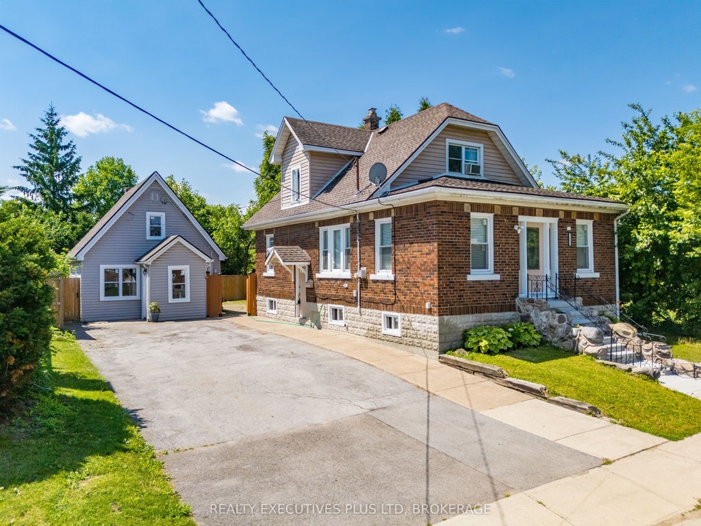 2 Houses on 1 Lot! It is like BOGO! Main home is a brick 1.5 story home with a large living room, all new windows, main floor bedroom, 4pc bath on the main floor, separate dining room with patio doors to large deck and fully fenced yard. Kitchen counters have been updated and comes with fridge and stove. Upstairs are 2 more bedrooms and a full bath. Basement is large and unfinished with a newer boiler heater. The second home on the property is the perfect rental or if you have older/adult children it provides them with their own home. Totally renovated with new flooring, new windows, new 3pc bathroom, new kitchen, new doors and more! Wall heater is older style but works well to heat the house. Parking for 6 vehicles total. Centrally located, close to public transportation and QEW.