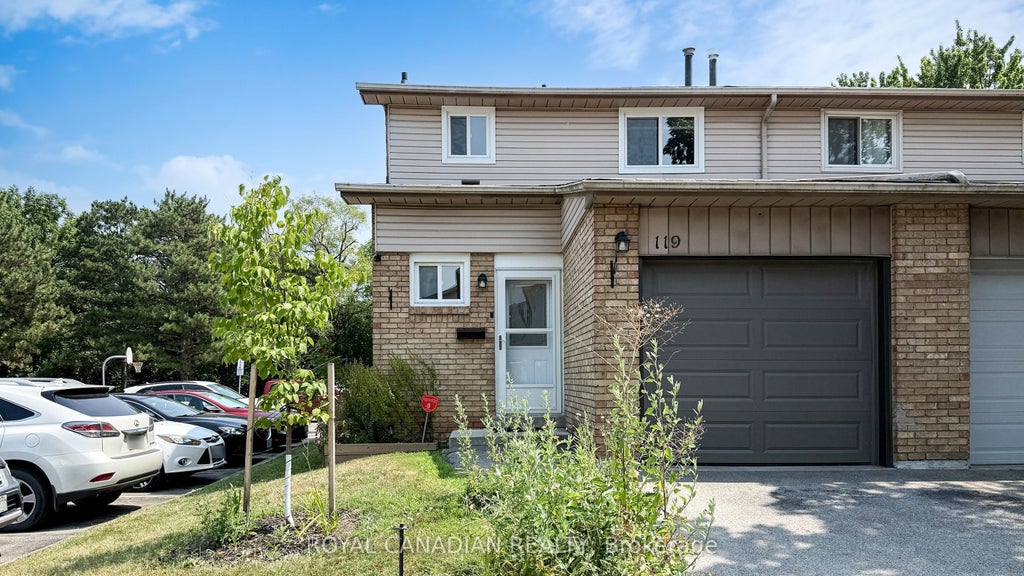 Completely Renovated End Unit Townhouse! Backs Onto Green Space! This 2-Storey home features 3 spacious bedrooms and 3 bathrooms. The main floor offers a modern kitchen with quartz countertops, freshly painted interiors, and new vinyl flooring on both main and upper levels. Upstairs includes 3 large bedrooms with a 4-piece bathroom. The finished basement provides additional living space with a 2-piece bathroom and pot lights. Recent updates include a new deck (2022), sliding glass door, professionally installed blinds (2024), and storm door (2023).