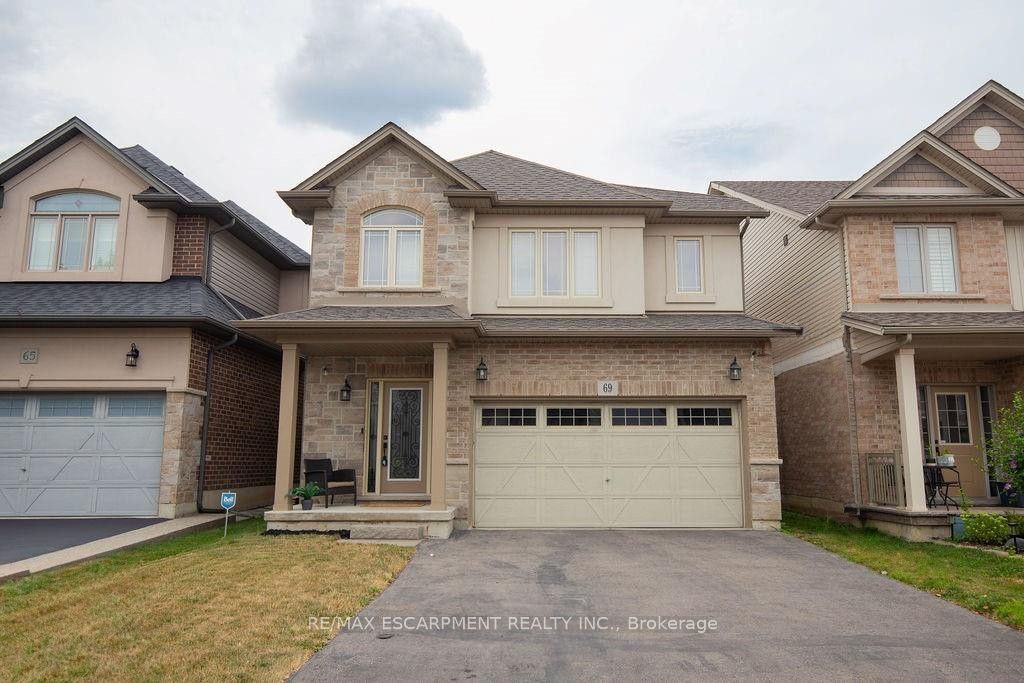 Welcome to this beautifully designed 4-bedroom, 3.5-bathroom, nestled in the family-friendly Paramount at Valley Park community. This spacious, split-level residence offers a layout that blends comfort, privacy, and practical living - ideal for busy suburban families. Step into a welcoming main level featuring a solid oak staircase, 9-foot California knockdown ceilings, and a spacious living room with a cozy gas fireplace. The open-concept kitchen is both functional and stylish, boasting solid maple cabinetry, a breakfast bar, ceramic tile flooring, a walk-in pantry, and an eat-in dinette with patio sliders and transom window leading to the backyard. Upstairs, the private primary suite occupies its own level for added separation and comfort, offering a large bedroom with broadloom carpet, a walk-in closet, and a spacious ensuite with soaker tub and oak vanity. Three additional generously sized bedroom search with ample closet space share a 4-piece bathroom with tiled tub surround. The finished basement extends your living space with a large recreation room, modern 3-piece bathroom with a glass shower, and plenty of storage. Located in a sought-after neighbourhood known for its great schools, parks, trails, shopping, and quick access to the Red Hill Valley Parkway - this is the perfect blend of suburban convenience and family-focused living.