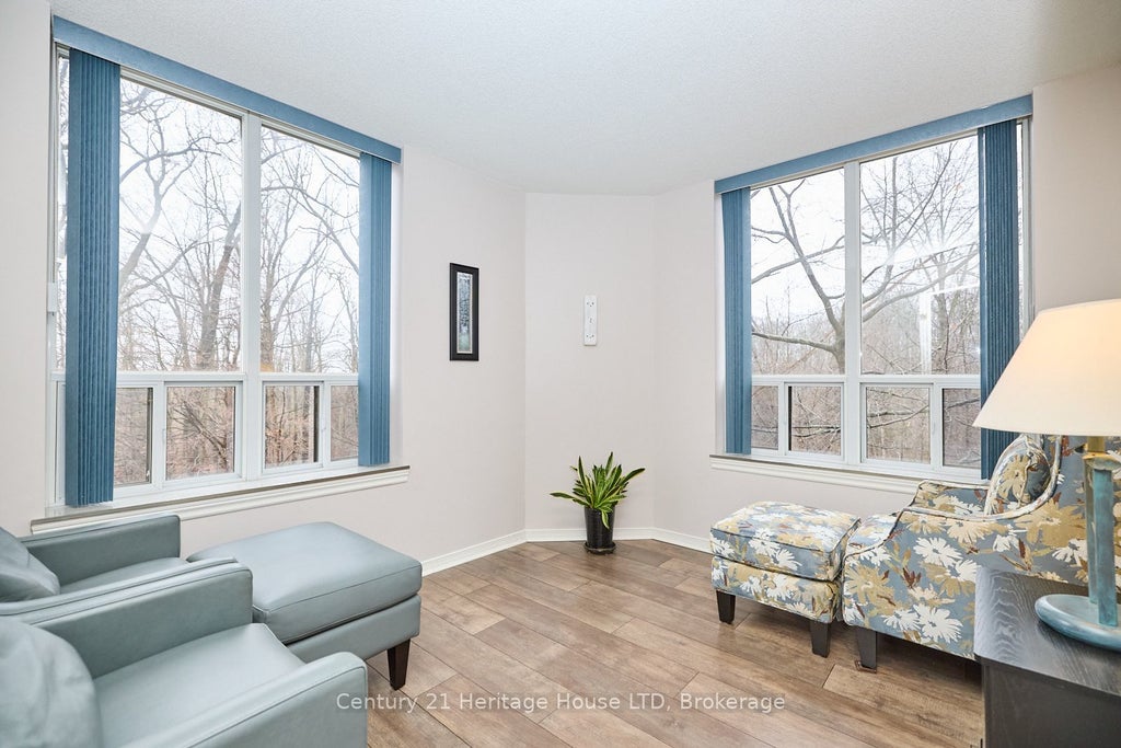 2 BEDROOM/2 BATHROOM PLUS BOUNS DEN!!!! Welcome to Unit 317 in the sought-after Mansions of Forest Glen. This wonderfully private and recently updated 3rd-floor corner end unit offers over 1,380 square feet of thoughtfully designed living space and is truly a retreat. Enjoy peaceful, tree-lined views of Shriners Woodlot Park and Creek from the comfort of your living room or primary bedroomboth offering secure access to your own patio, as well as the inviting outdoor lounge and BBQ area. Inside, you'll find two generously sized bedrooms, two full bathrooms, and a versatile den with picturesque views, perfect for a home office or cozy reading nook. Custom window coverings and marble window sills throughout. The sunlit galley kitchen is ideal for your morning coffee and flows seamlessly into a spacious dining and living area that's great for both relaxing and entertaining. The primary suite features a walk-in closet, and the convenience of in-suite laundry adds to the ease of everyday living. Small pet lovers will be pleased to know the building welcomes pets under 20 lbs. As a resident, you'll also enjoy exceptional amenities, including full-time concierge service, a heated indoor pool, hot tub, fitness center, library, lounge, and a party room with a fully equipped kitchen. Immaculate, move-in ready, and available for quick possession. This is a rare opportunity to enjoy carefree living in one of the area's most desirable communities.