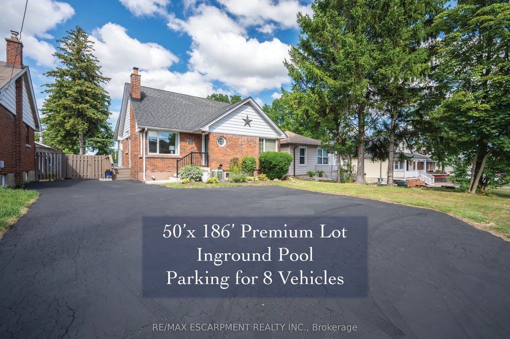 Welcome to this charming 1.5-storey fully detached home, offering over 2,000 sqft of thoughtfully designed living space blending character, comfort, and convenience. Offering 3 bedrooms and a fully finished basement, this home is ideal for families, entertainers, or anyone seeking versatile living space. Step inside to a spacious open-concept kitchen featuring a centre island, ample storage, and plenty of natural light from large windows and skylights. Hardwood floors flow throughout the main level, adding warmth and elegance. Enjoy your morning coffee or a pre-dinner cocktail while taking in beautiful views of the private backyard complete with an inground pool, cozy fire pit area, and generous green space perfect for kids and/or pets. The inviting living room features a charming wood-burning fireplace, ideal for cozy winter evenings. A newly renovated main bathroom includes a large stand-up shower, updated vanity, stylish lighting, and added storage conveniently situated between two well-sized bedrooms. Retreat upstairs to your private primary suite featuring vaulted ceilings, skylights, and its own water closet. With plenty of space, there's exciting potential to create a stunning ensuite bath. Bonus: access to ample attic storage adds to the home's practicality. The fully finished basement provides great versatility with a gas fireplace, spacious 3-piece bathroom, dedicated laundry area, large storage room, and potential for a separate entrance ideal for extended family or future in-law suite. Parking for 8 cars and situated close to major highways,schools, shopping, and all amenities this home truly offers lifestyle and location. Don't miss the chance to make it yours!