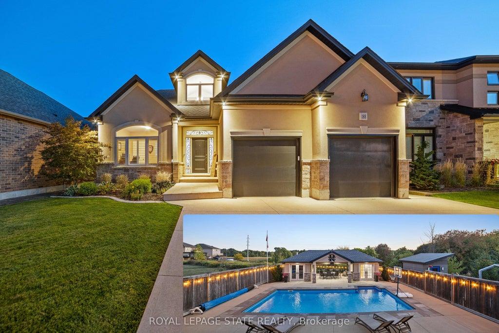 Welcome to 188 Mother's Street, a stunning bungaloft that combines sophistication, comfort, and exceptional outdoor living, all set on a premium lot that backs onto serene, protected greenspace. This beautifully maintained home features 4 spacious bedrooms, 2 full bathrooms, and 3 additional half baths, offering a thoughtful layout and meticulous craftmanship throughout. At the center of the home is a custom gourmet kitchen designed to impress, boasting an expansive island, quartz countertops, ample cabinetry, and high-end appliances, perfect for culinary enthusiasts and entertainers alike. The open-concept designed creates a seamless flow from the kitchen into the inviting living areas, making it ideal for both relaxed family living and elegant entertaining. Step outside to experience your very own resort-style backyard. Enjoy an inground heated saltwater pool, a fully outfitted pool house with a bathroom, change room, wet bar, and kitchenette. A covered outdoor lounge with retractable screens creates the perfect space for entertaining or unwinding. Soak in the hot tub, relax on the patio, or challenge friends to a game on the private bocce court-this outdoor haven has it all. With breathtaking views, luxurious interiors, and a backyard that feels like a getaway, this extraordinary property offers a lifestyle of elegance, relaxation, and refined living. This isn't just a home- it's a private retreat.